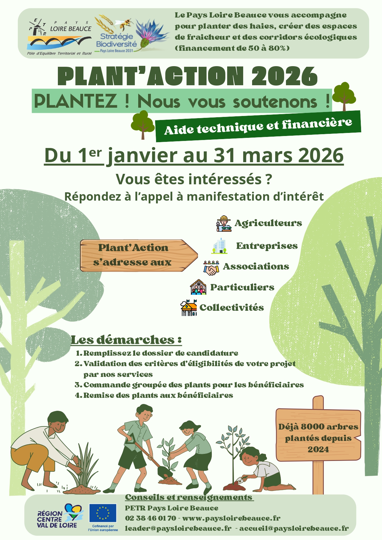 Dans un monde où les défis environnementaux et climatiques deviennent de plus en plus préoccupants, les arbres se révèlent être des alliés indispensables dans la préservation de notre planète. Face à ce constat, le Pays Loire Beauce souhaite favoriser la plantation d’arbres sur son territoire via l’opération « Plant’action ».